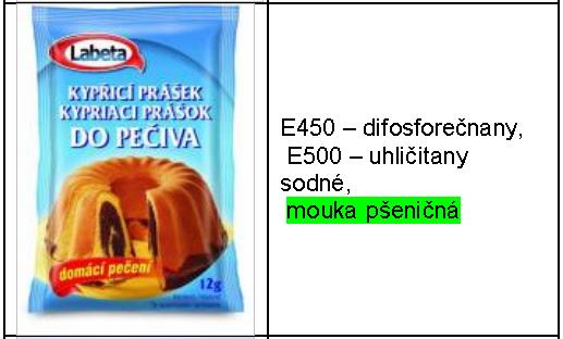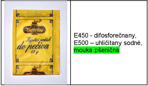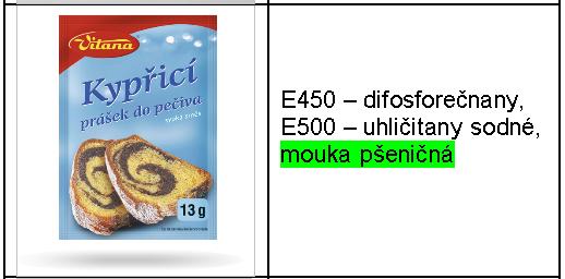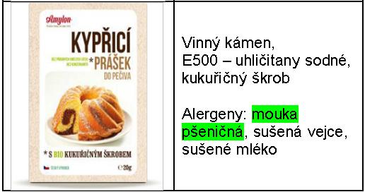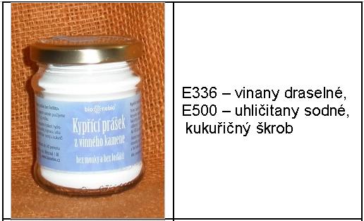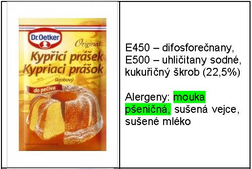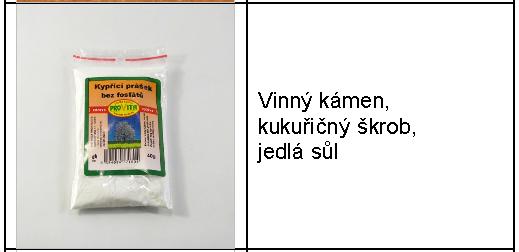 Při výběru kypřícího prášku bychom měli číst jeho složení na obalu. Vyrábějí se totiž jak kypřící prášky s příměsí mouky, tak se škrobem a bez obsahu mouky. Následující tabulka zobrazuje některé druhy kypřících prášků a jejich složení.